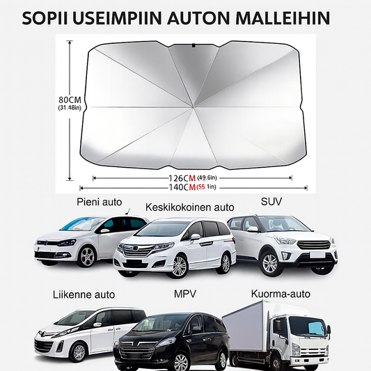 Taitettava tuulilasin aurinkosuoja – sateenvarjomainen muotoilu kuumuutta ja UV-säteitä vastaan