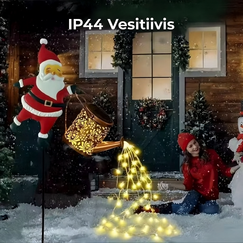 Tuo joulun taika puutarhaasi tällä ainutlaatuisella Joulupukki-aiheisella valolyhdyllä. Sisäänrakennetut kaskadi-LED-valot luovat upean efektin, aivan kuin kimalteleva vesi virtaisi kastelukannusta. Lämmin ja kutsuva hehku tuo välittömästi satumaista jouluvaloa terassille, poluille tai kukkapenkkeihin ja tekee pihasta tunnelmallisen ja juhlavan.