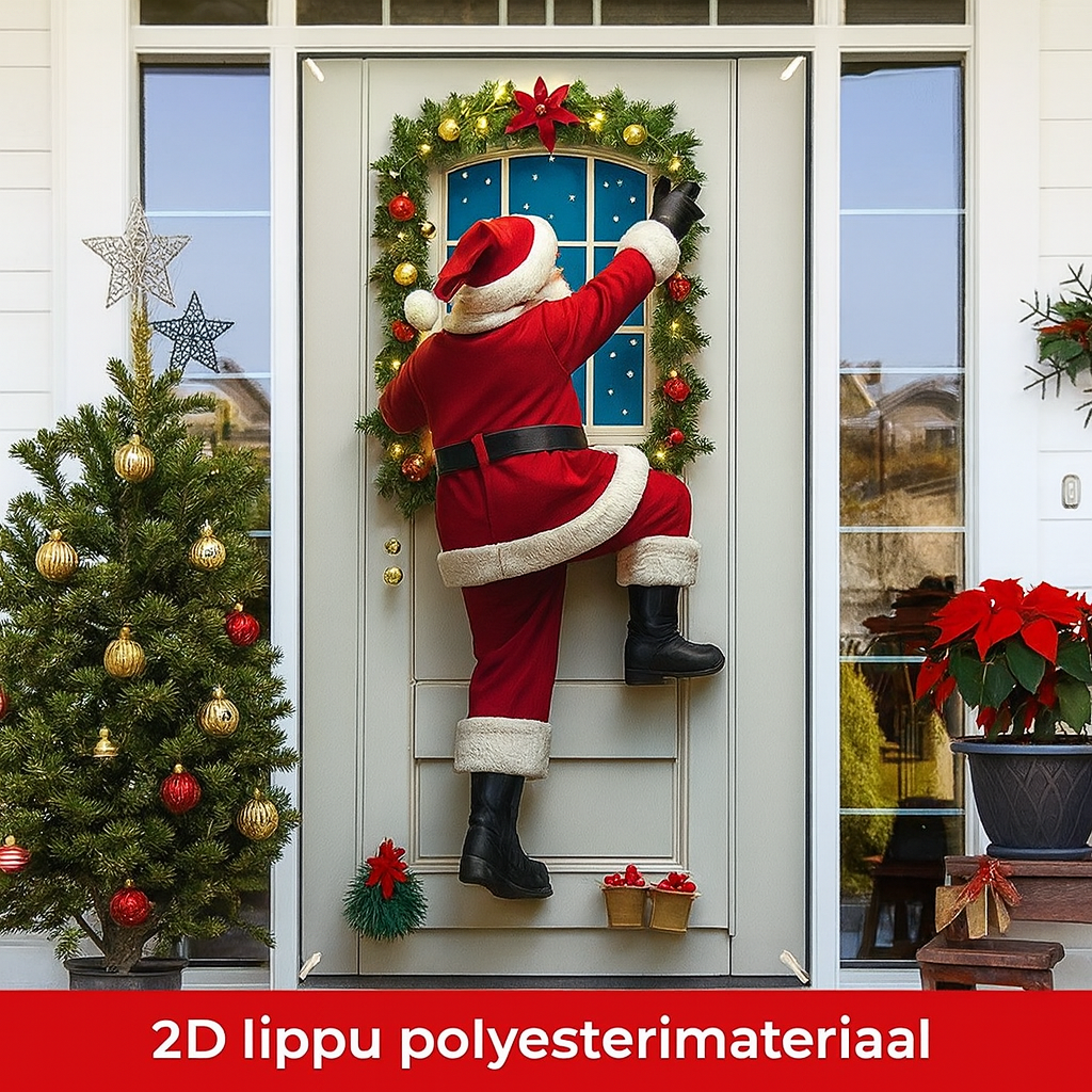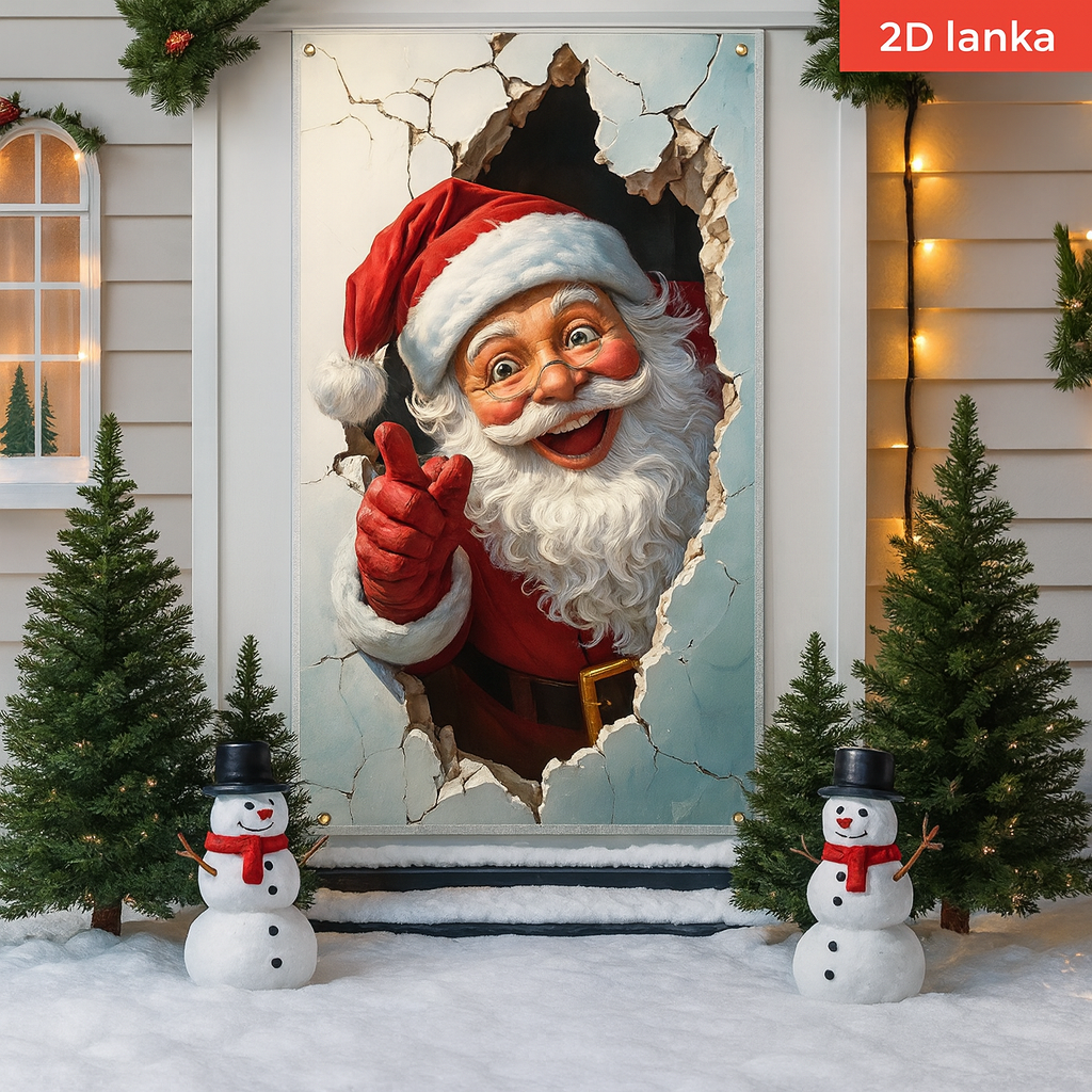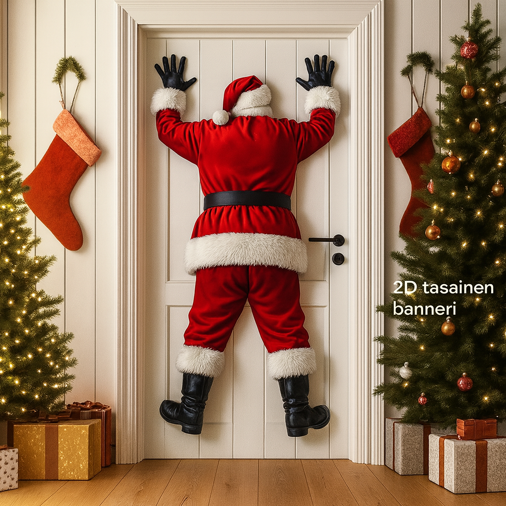 Tämä Santa Claus Door Frame -joulubanneri tuo kotiin välittömän juhlatunnelman. Iloinen joulutervehdys ja lämminhenkinen kuvitus luovat kutsuvan ilmapiirin jokaiselle vieraalle. Banneri lisää sisääntuloon kodikkuutta, iloa ja joulun taikaa, jotka leviävät luontevasti koko kotiin.