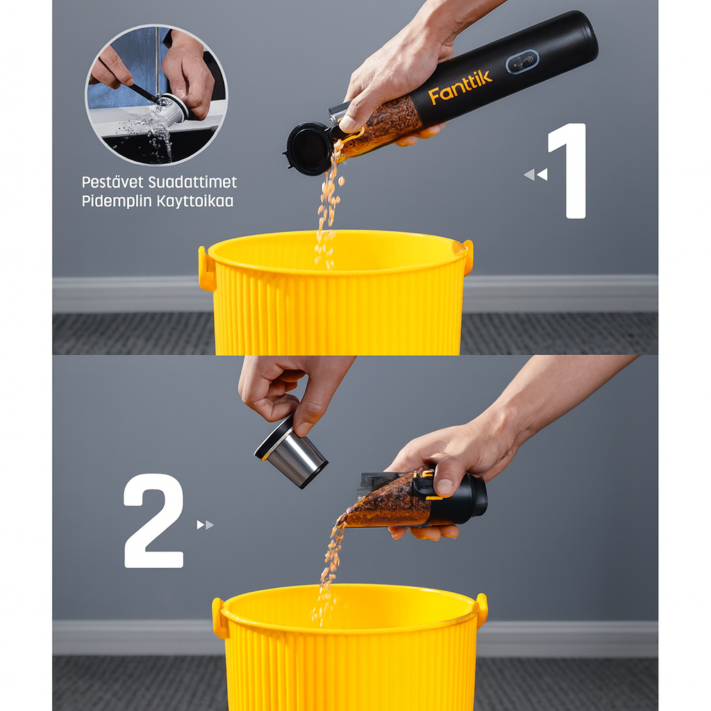 Ohut ja helposti mukana kulkeva muotoilu mahdollistaa imurin säilyttämisen kätevästi hansikaslokerossa tai oven taskussa. 2 tunnin pikalataus varmistaa, että laite on aina käyttövalmiina silloin, kun sitä tarvitset. Helposti tyhjennettävä pölysäiliö ja pestävä suodatin tekevät huollosta nopeaa ja hygieenistä. Tämä on täydellinen käyttäjäystävällinen ratkaisu jokaiseen autoon.