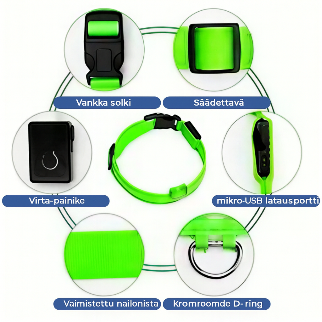 Ladattava LED-koiran kaulapanta (USB:n kautta)