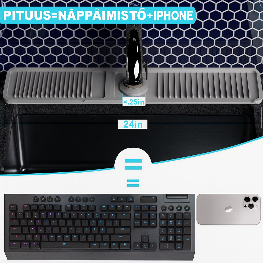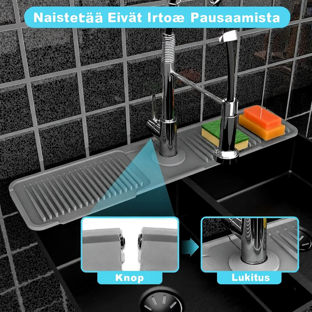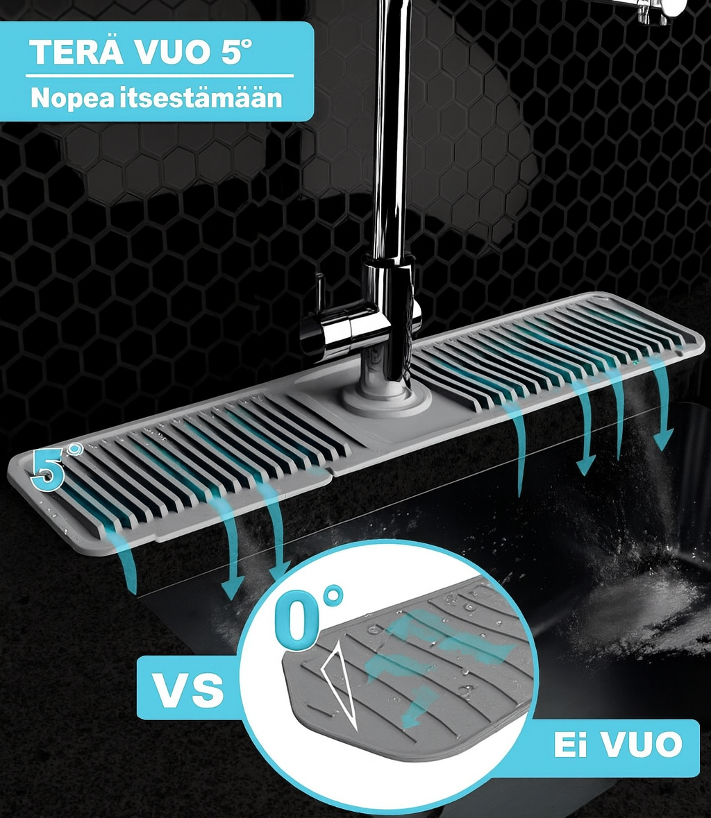 Oletko kyllästynyt ärsyttäviin vesilammikoihin keittiöhanan ympärillä? Tämä silikoninen hanamatto on täydellinen ratkaisu pitämään tiskipöydän kuivana ja siistinä. Se toimii tehokkaana roiskeensuojana, joka kerää kaikki pisarat ja roiskeet. Älykkään muotoilun ansiosta vesi ohjautuu suoraan takaisin altaaseen, mikä estää kalkkisaostumat ja kosteusjäljet.