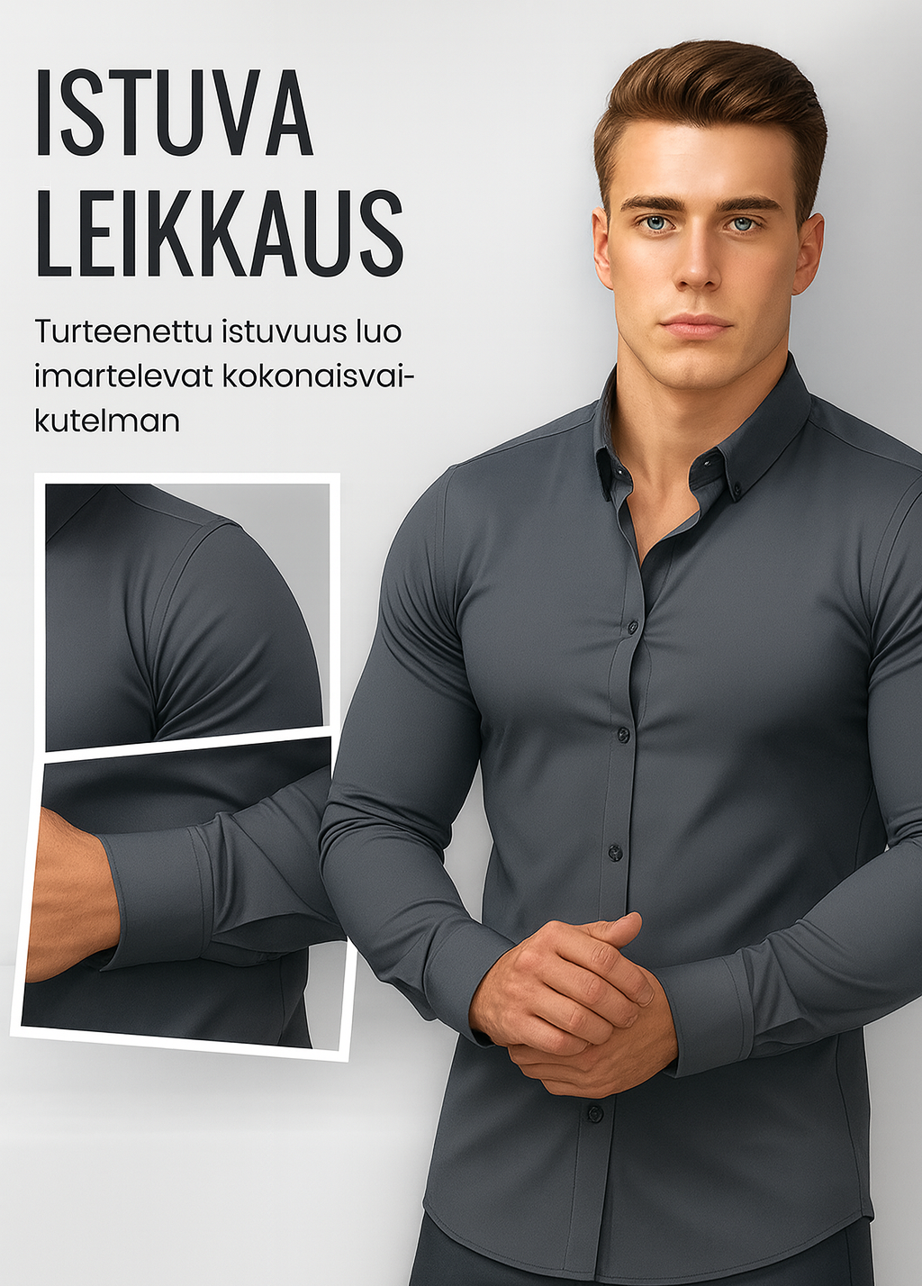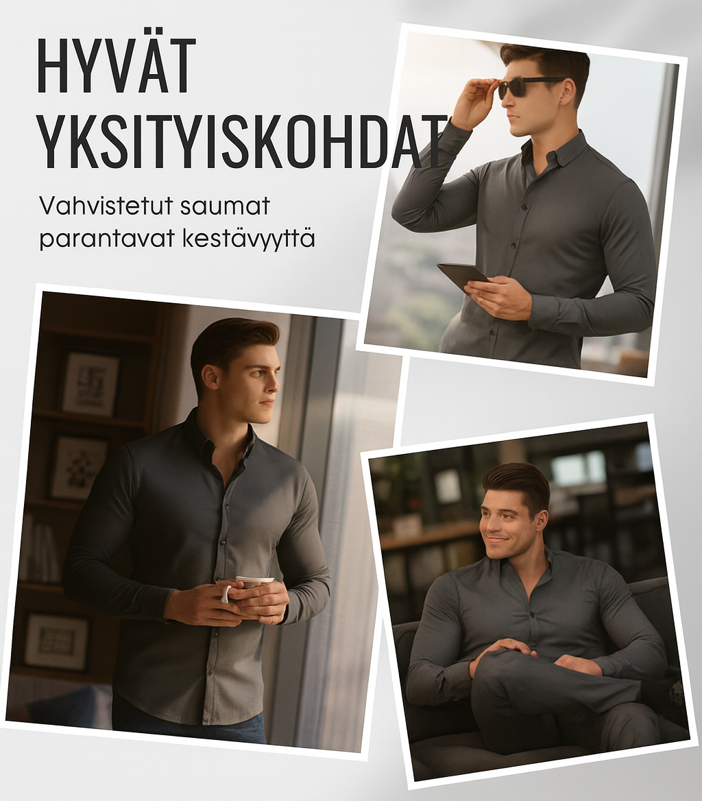 Design: Ajaton malli, jossa perinteinen kaulus ja nappikiinnitys